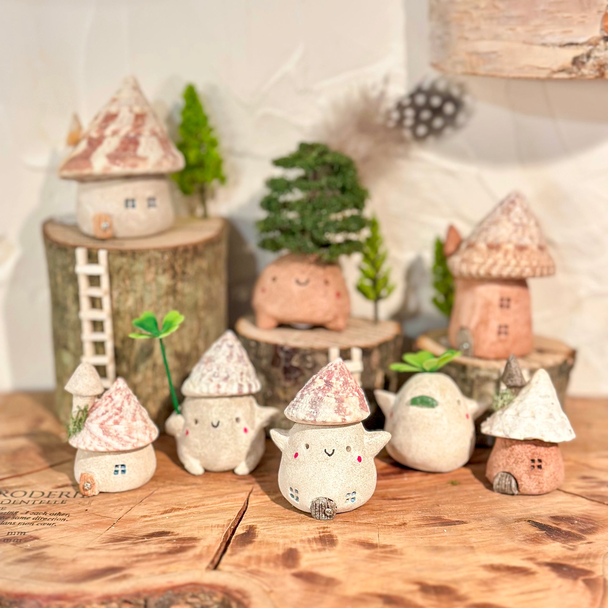 梱包は厳重にいたしますが、特に遠距離運送の場合、屋根に埋め込んだ植物が傷む場合がございます。破損が激しい場合はご連絡いただければ対応いたしますが、多少はご理解いただければ幸いです。また、作品は一つ一つ全てサイズや色が異なるため、交換の場合は似たような作品とお取り替えになりますのでご了承ください。
