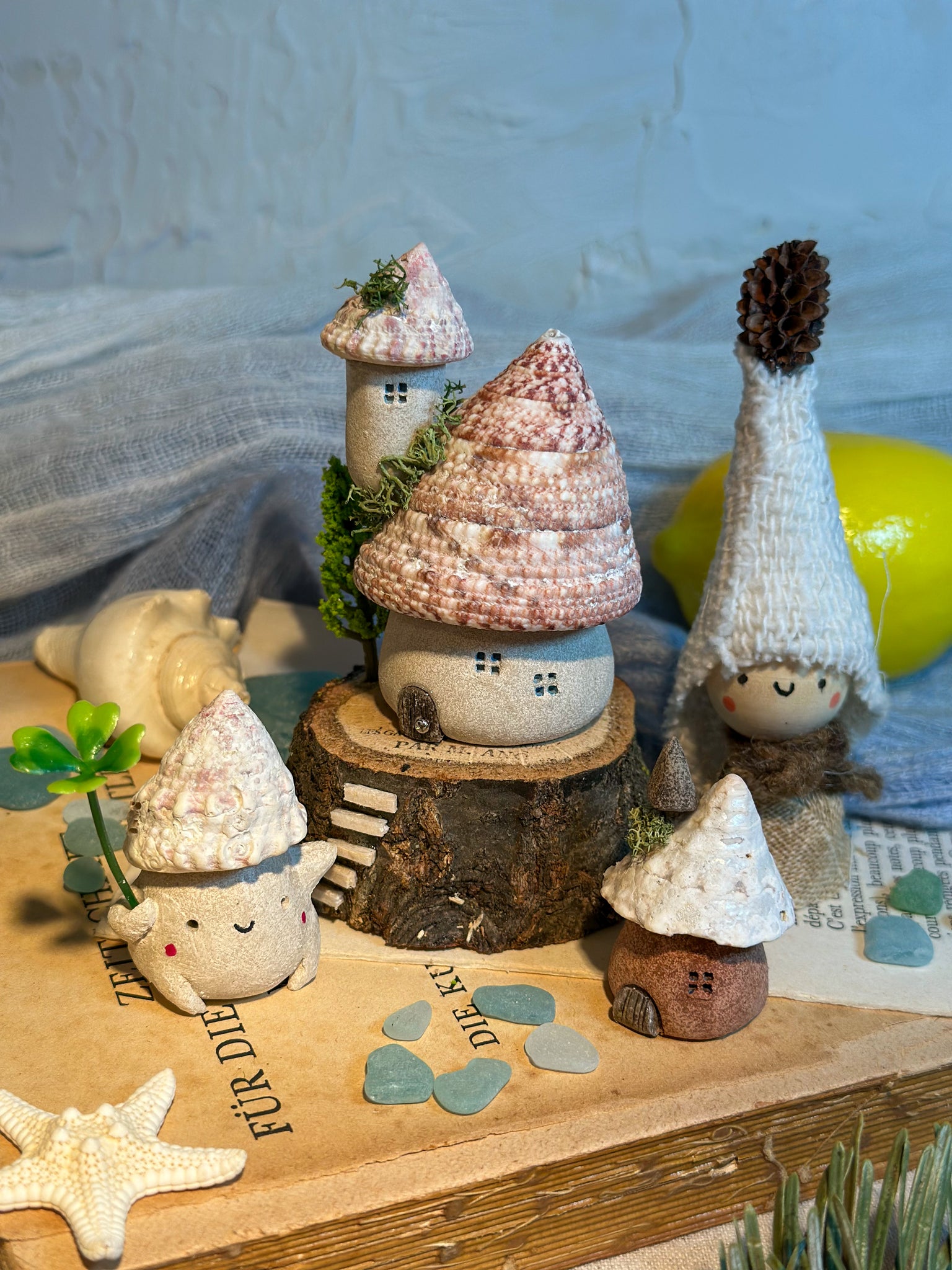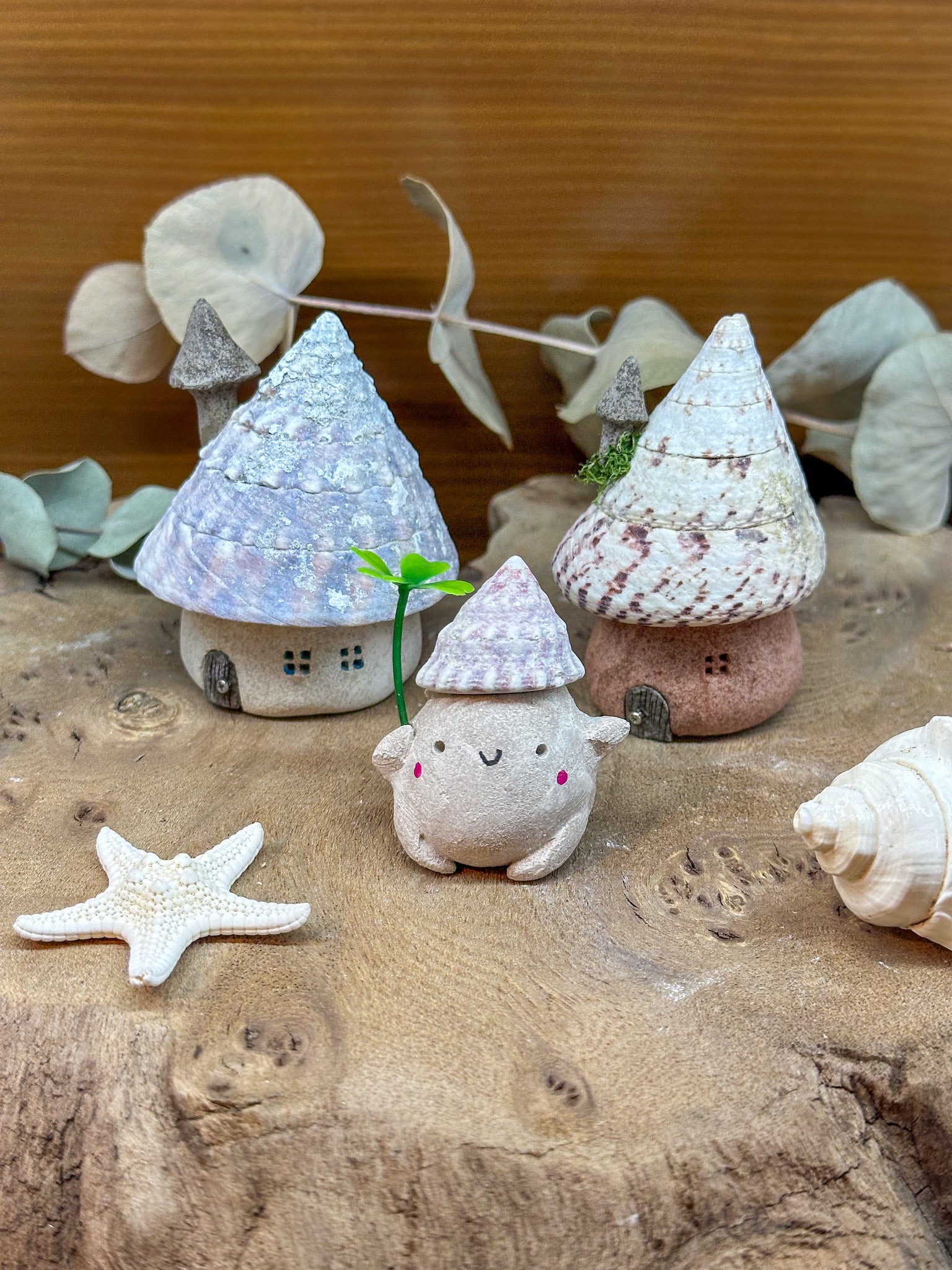 神奈川県葉山の海岸で集めた何百という貝殻から厳選し、一つ一つサイズや形に合わせてすべて手作りで製作。貝殻は色も形も大きさも一つ一つ異なるため、同じ作品は一つもありません。