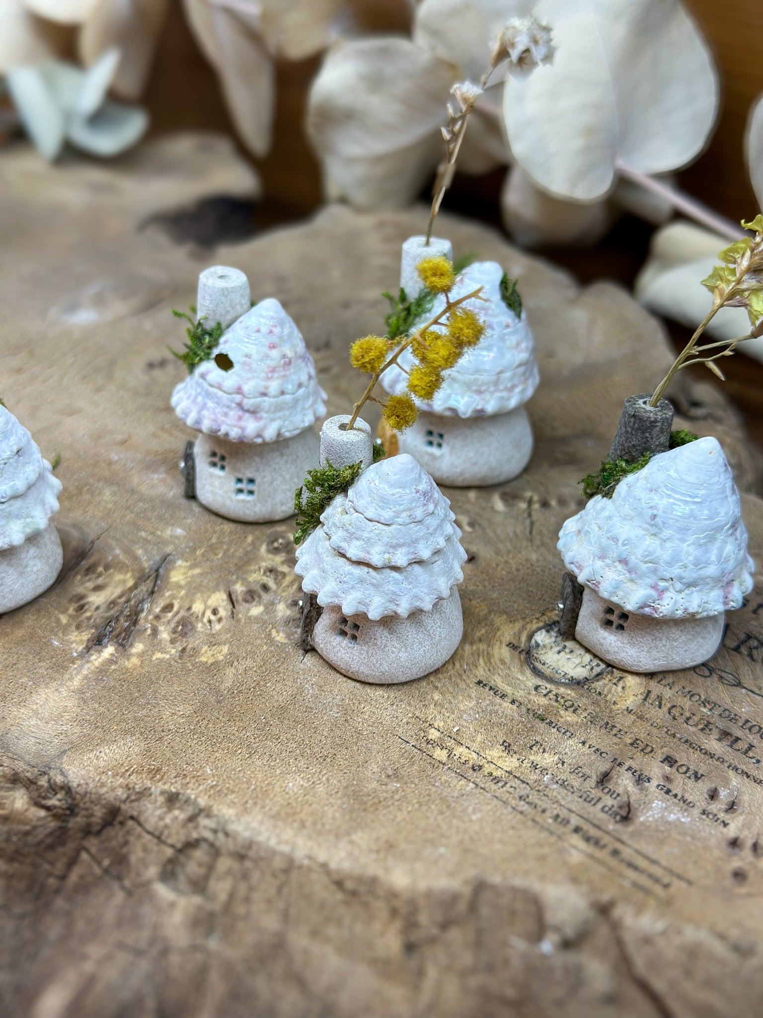 白い貝殻の屋根に、プリザーブドモスとフラワーの花畑。