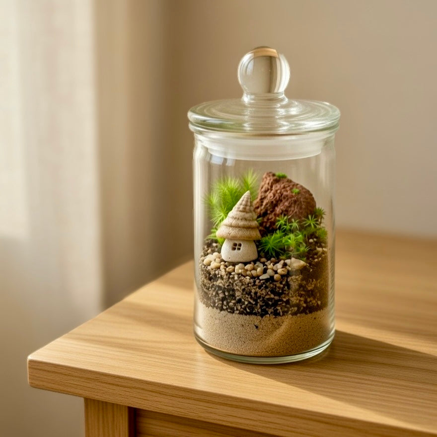 あなたのテラリウムや多肉植物の鉢に、土に刺すだけ。気づけばそこに、妖精たちが暮らしているような、小さくて完璧な世界が生まれています。